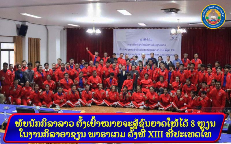- ທັບນັກກິລາລາວ ຕັ້ງເປົ້າໝາຍຈະສູ້ຊົນຍາດໃຫ້ໄດ້ 8 ຫຼຽນ ໃນງານກິລາອາຊຽນ ພາຣາເກມ ຄັ້ງທີ XIII ທີ່ປະເທດໄທ