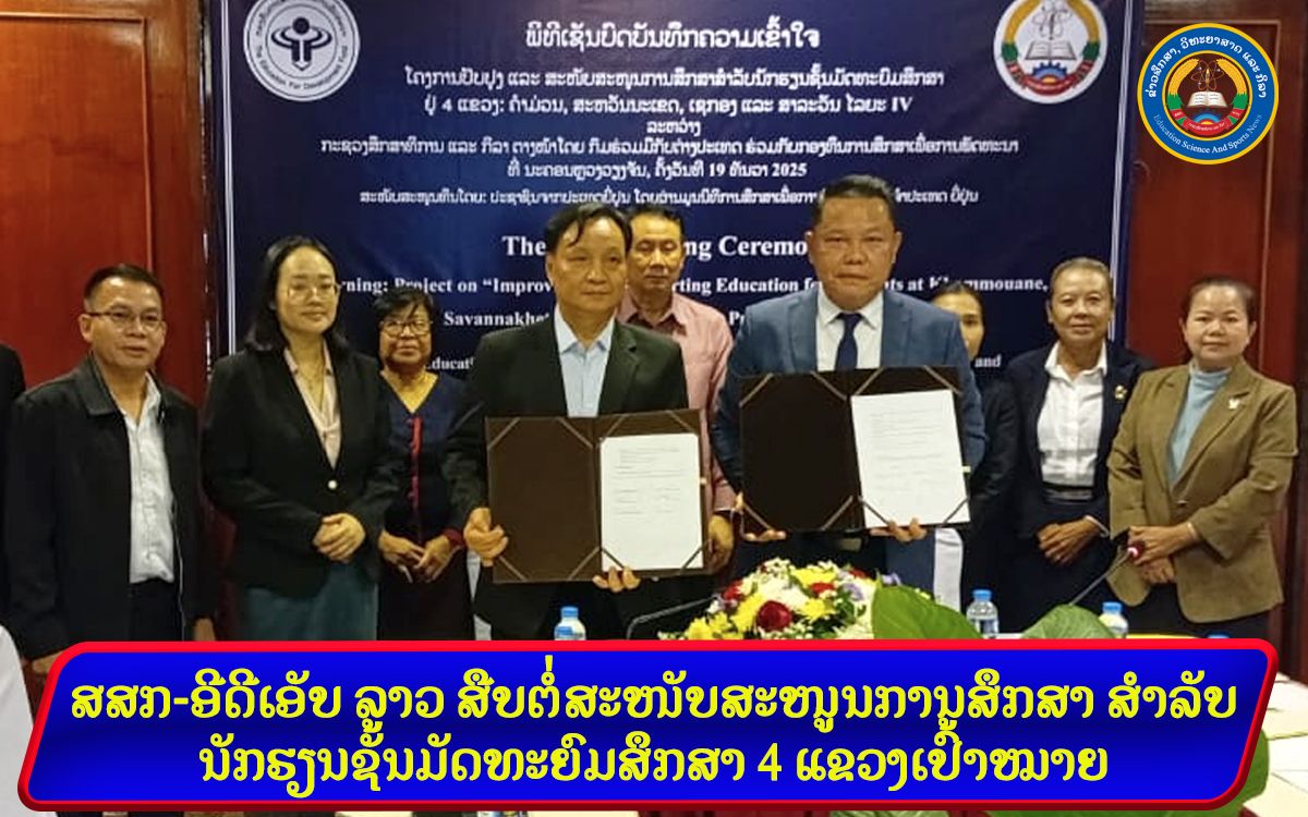 - ສສກ-ອີດີເອັບ ລາວ ສືບຕໍ່ສະໜັບສະໜູນການສຶກສາ ສໍາລັບນັກຮຽນຊັ້ນມັດທະຍົມສຶກສາ 4 ແຂວງເປົ້າໝາຍ