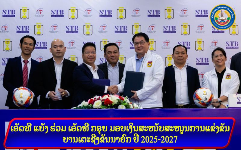 - ເອັດທີ ແບັງ ຮ່ວມ ເອັດທີ ກຣຸບ ມອບເງິນສະໜັບສະໜູນການແຂ່ງຂັນບານເຕະຊີງຂັນນາຍົກ ປີ 2025-2027