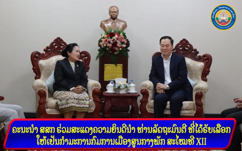- ຄະນະນໍາ ສສກ ຮ່ວມສະແດງຄວາມຍິນດີນໍາ ທ່ານລັດຖະມົນຕີ ທີ່ໄດ້ຮັບເລືອກໃຫ້ເປັນກຳມະການກົມການເມືອງສູນກາງພັກ ສະໄໝທີ XII