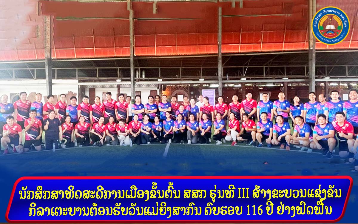 ນັກສຶກສາທິດດີການເມືອງຂັ້ນຕົ້ນ ລະບົບ 3 ເດືອນ ຊຸດທີ III ກະຊວງສຶກສາທິການ ແລະ ກິລາ (ສສກ) ໄດ້ສ້າງຂະບວນການແຂ່ງຂັນກິລາເປຕັງມິດຕະພາບ ເພື່ອສ້າງຂະບວນການຂ່ຳນັບຮ…