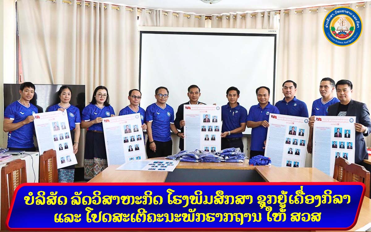 ບໍລິສັດ ລັດວິສາຫະກິດ ໂຮງພິມສຶກສາ ຊຸກຍູ້ເຄື່ອງກິລາ ແລະ ໂປດສະເຕີຄະນະພັກຮາກຖານ ໃຫ້ ສວສ