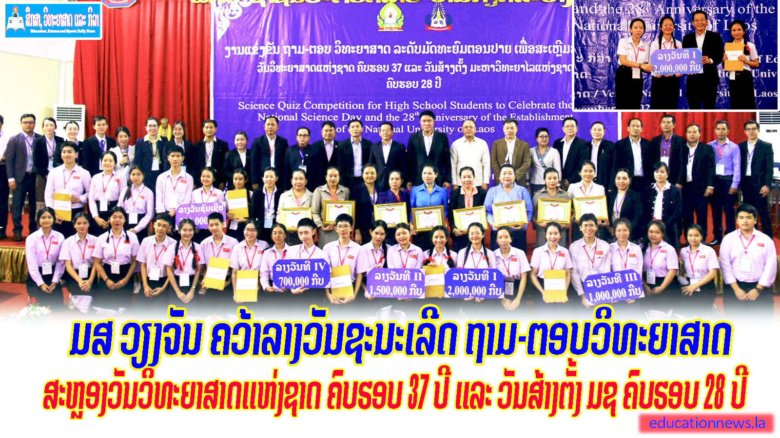 ມສ ວຽງຈັນ ຄວ້າລາງວັນຊະນະເລີດ ຖາມ-ຕອບວິທະຍາສາດ ສະຫຼອງວັນວິທະຍາສາດແຫ່ງຊາດ ຄົບຮອບ 37 ປີ ແລະ ວັນສ້າງຕັ້ງ ມຊ ຄົບຮອບ 28 ປີ