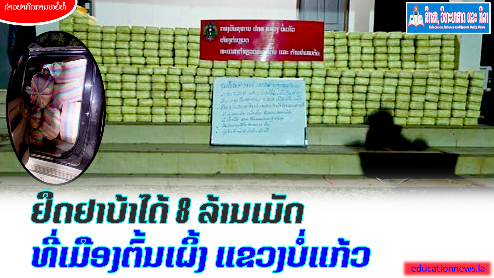 ສະກັດຢຶດຢາບ້າໄດ້ 8 ລ້ານເມັດ ທີ່ເມືອງຕົ້ນເຜິ້ງ ແຂວງບໍ່ແກ້ວ