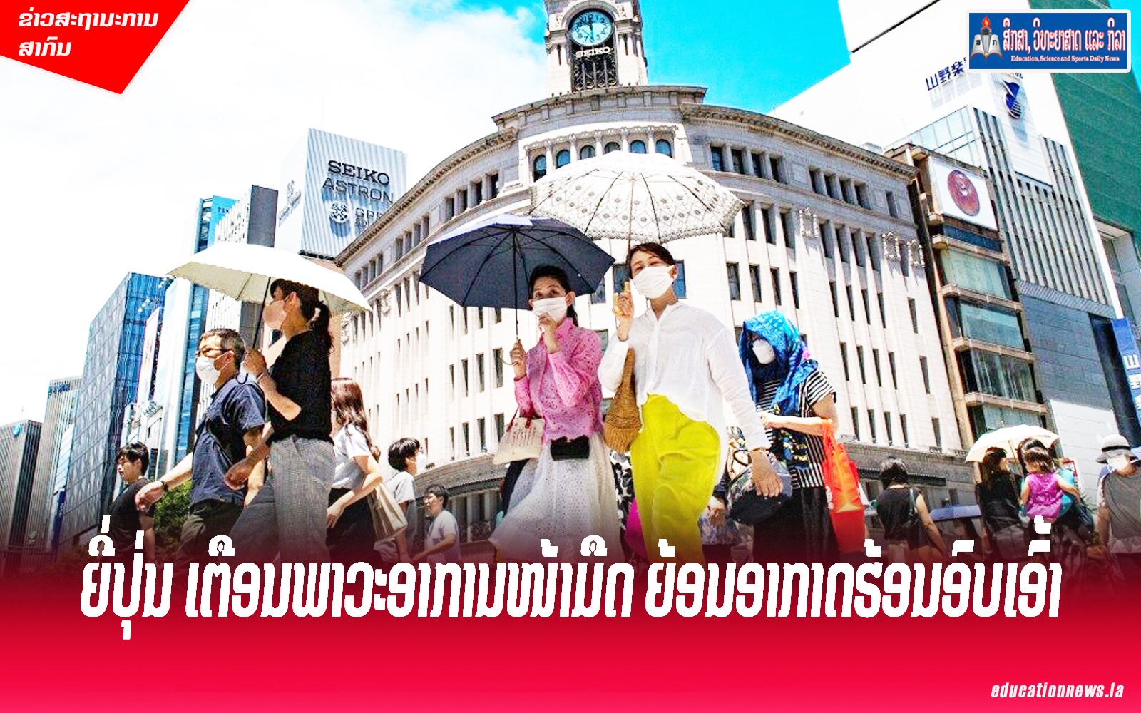 ຂ່າວຕ່າງປະເທດລາຍງານ ໃນວັນທີ 29 ກໍລະກົດ ຜ່ານມາວ່າ: ຍີ່ປຸ່ນ ອອກຄຳເຕືອນພາວະອາການໜ້າມືດວິນຫົວ (Heatstroke) ຫຼື ໂຣກລົມແດດ ໃນ 38 ແຂວງ ຂອງປະເທດ ເນື່ອງຈາກຄື້ນຄວາມຮ້ອນແຮງອາດສົ່ງຜົນໃຫ້ອຸນຫະພູມໃນບາງພາກພື້ນເພີ່ມ…