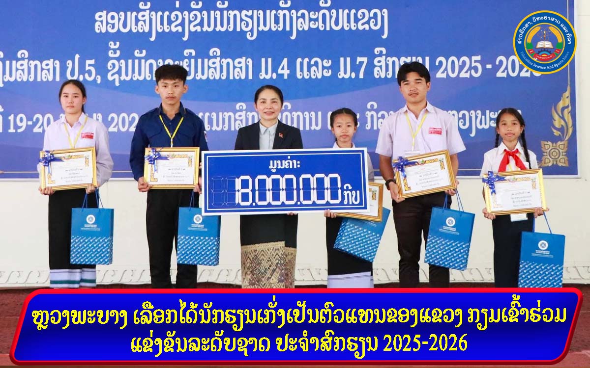 ພະແນກສຶກສາທິການ ແລະ ກິລາ ແຂວງຫຼວງພະບາງ ໄດ້ຈັດການສອບເສັງຄັດເລືອກນັກຮຽນເກັ່ງລະດັບແຂວງຊັ້ນປະຖົມສຶກສາ (ປ.5), ຊັ້ນມັດທະຍົມສຶກສາຕອນຕົ້ນ (ມ.4) ແລະ ຊັ້ນມັດທະຍົມສຶກສາຕອນປາຍ (ມ.7) ພ້ອມເລືອກໄດ້ຕົວແທນຂອງແຂວງເພື່ອກຽມເຂົ້າຮ່ວມແຂງຂັນໃນລະດັບຊາດ ປະຈໍາສົກຮຽນ 2025-2026 ຊຶ່ງພິທີສອບເສັງດັ່ງກ່າວ ໄດ້ຈັດຂຶ້ນໃນລະຫວ່າງວັນທີ 19-20 ກຸມພາ 2026 ທີ່ພະແນກສຶກສາທິການ ແລະ ກິລາແຂວງ ໂດຍພາຍໃຕ້ການເປັນປະທານ ຂອງ ທ່ານ ນາງ ວຽນວິໄລ ດີລະພັນ ຮອງປະທານຄະນະກຳມະການປົກຄອງແຂວງ, ມີຫົວໜ້າ-ຮອງຫົວໜ້າພະແນກສືກສາທິການ ແລະ ກິລາແຂວງ, ຜູ້ຕາງໜ້າຈາກຫ້ອງການສືກສາທິການ ແລະ ກິລາ ເມືອງ/ນະຄອນ, ຄະນະອຳນວຍການໂຮງຮຽນ, ຫົວໜ້າ-ຮອງຫົວໜ້າຂະແໜງ-ສູນ, ຄະນະກຳມະການເຝົ້າຫ້ອງສອບເສັງ, ຄູ-ອາຈານນຳພາ ພ້ອມດ້ວຍ ນັກສອບເສັງເຂົ້າຮ່ວມ.