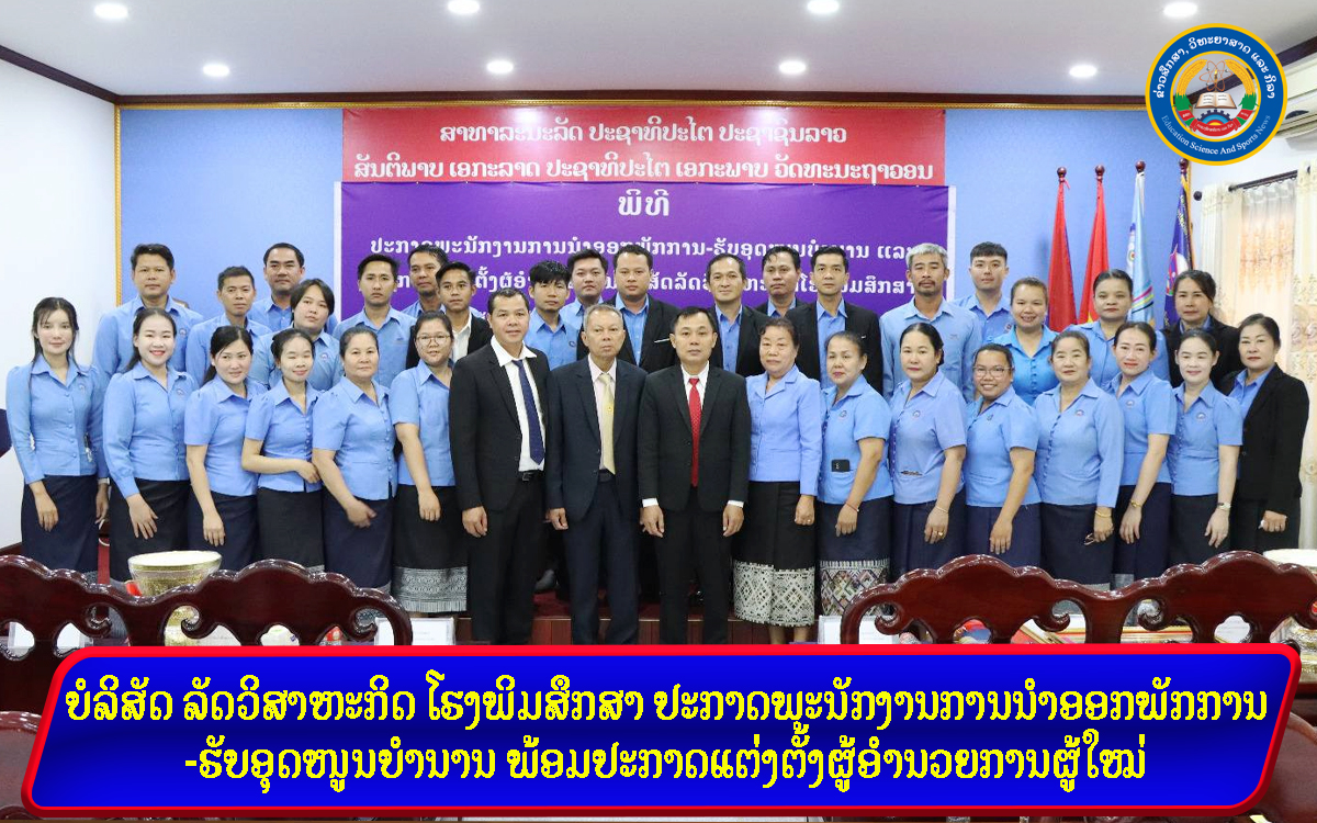 ບໍລິສັດ ລັດວິສາຫະກິດ ໂຮງພິມສຶກສາ ປະກາດພະນັກງານການນຳອອກພັກການ-ຮັບອຸດໜູນບຳນານ ພ້ອມປະກາດແຕ່ງຕັ້ງຜູ້ອຳນວຍການຜູ້ໃໝ່
