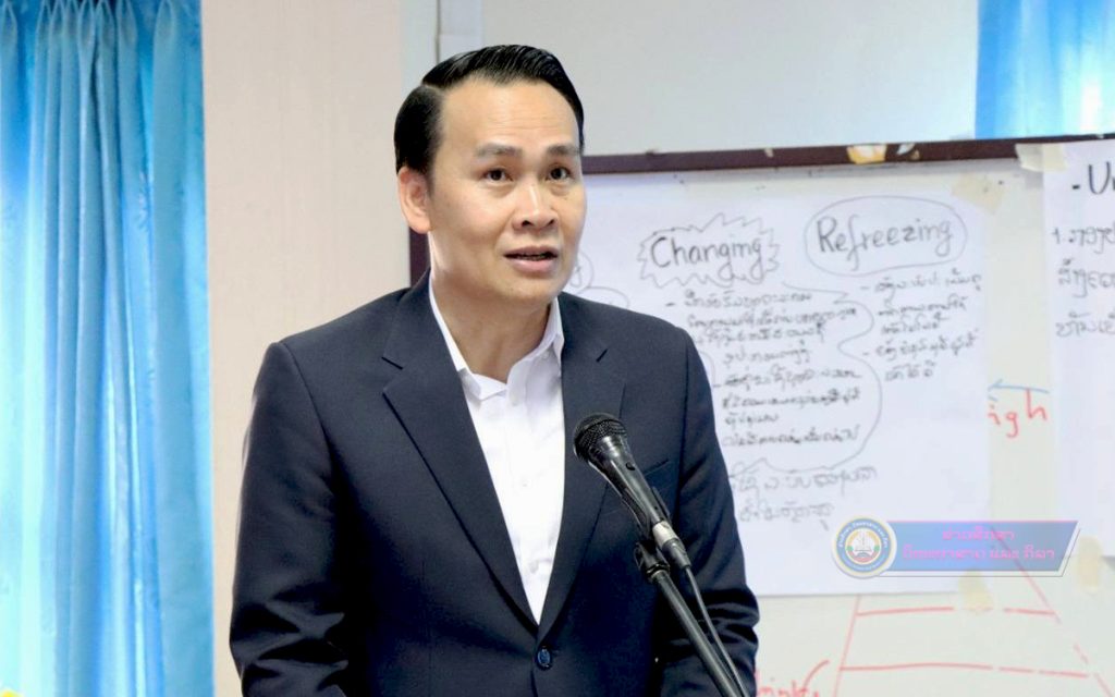ສະຫາຍ ຮສ.ປອ ທອງສະລິດ ມັງໜໍ່ເມກ ກໍາມະການກົມການເມືອງສູນກາງພັກ, ຮອງນາຍົກລັດຖະມົນຕີ, ເລຂາຄະນະພັກກະຊວງ, ລັດຖະມົນຕີກະຊວງສຶກສາທິການ ແລະ ກິລາ ຂຶ້ນບັນຍາຍໃຫ້ຄວາມຮູ້ແກ່ນັກສຶກສາທິດສະດີການເມືອງຂັ້ນຕົ້ນ ຊຸດທີ III ສສກ