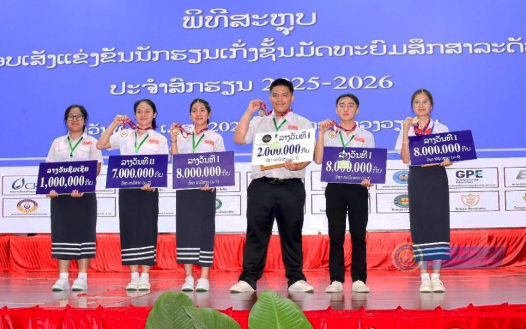 ນັກຮຽນຕົວແທນ ຈາກນະຄອນຫຼວງວຽງຈັນ ສາມາດສ້າງຜົນງານພົ້ນເດັ່ນ ຍາດໄດ້ລາງວັນຊະນະເລີດເຖິງ 5 ລາຍການ ຈາກຜົນງານຂອງນ້ອງນັກຮຽນໂຮງຮຽນມັດທະຍົມສຶກສາ (ມສ) ພອນສະຫວັນແຫ່ງຊາດ ເມືອງໄຊທານີ, ມສ ຫ້ອມສະຫວັນ ເມືອງຫາດຊາຍຟອງ ແລະ ໂຮງຮຽນສາມັນວິຣະຖາວອນ ເມືອງສີສັດຕະນາກ ສ່ວນລາງວັນອັນດັບທີ 2 ສອງລາຍການ ໄດ້ຈາກໂຮງຮຽນ ສິນໄຊ ເມືອງຈັນທະບູລີ ໃນການສອບເສັງນັກຮຽນເກັ່ງລະດັບຊາດ ຊັ້ນ ມ.4 ແລະ ມ.7 ປະຈຳສົກຮຽນ 2025-2026.