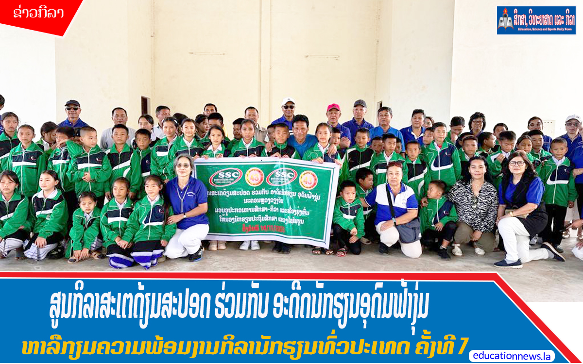 ສູນກິລາສະເຕດ້ຽມສະປອດ ຮ່ວມກັບ ອະດີດນັກຮຽນອຸດົມຟ້າງຸ່ມ ມອບເຄື່ອງກິລາ ໃຫ້ສອງໂຮງຮຽນ ແຂວງໄຊສົມບູນ