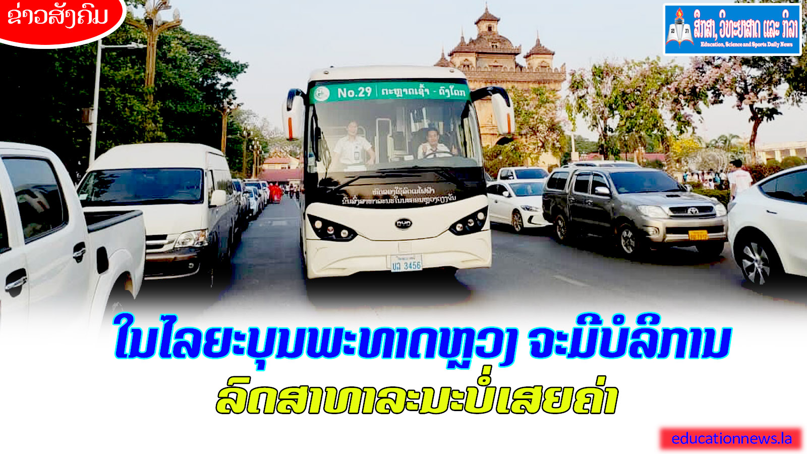 ເມື່ອວັນທີ 20 ພະຈິກ 2023 ທີ່ພະແນກໂຍທາທິການ ແລະ ຂົນສົ່ງ ນະຄອນຫຼວງວຽງຈັນ (ຍທຂ ນວ) ໄດ້ຈັດພິທີຖະແຫຼງຂ່າວການບໍລິການລົດສາທາລະນະໂດຍບໍ່ເສຍຄ່າໃນງານບຸນນະມັດສະການພະທາດຫຼວງ ໂດຍເປັນກຽດຖະແຫຼງຂ່າວຂອງທ່ານ ສົມສະນິດ ລວດທອງຄຳ ຮອງຂະແໜງຂົນສົ່ງ ພະແນກ ຍທຂ ນວ, ທ່ານ ພັນໂທ ສັງຄົມ ພົມມະລາດ ຫົວໜ້າພະແນກຕຳຫຼວດຈະລາຈອນ ປກສ ນວ, ທ່ານ ທະນົງສີ ເດດວົງສອນ ຫົວໜ້າພະແນກແຜນການ ແລະ ຂົນສົ່ງລັດວິສາຫະກິດລົດເມ ນວ, ມີບັນດາສື່ມວນຊົນ ແລະ ພາກສ່ວນກ່ຽວຂ້ອງເຂົ້າຮ່ວມ.
