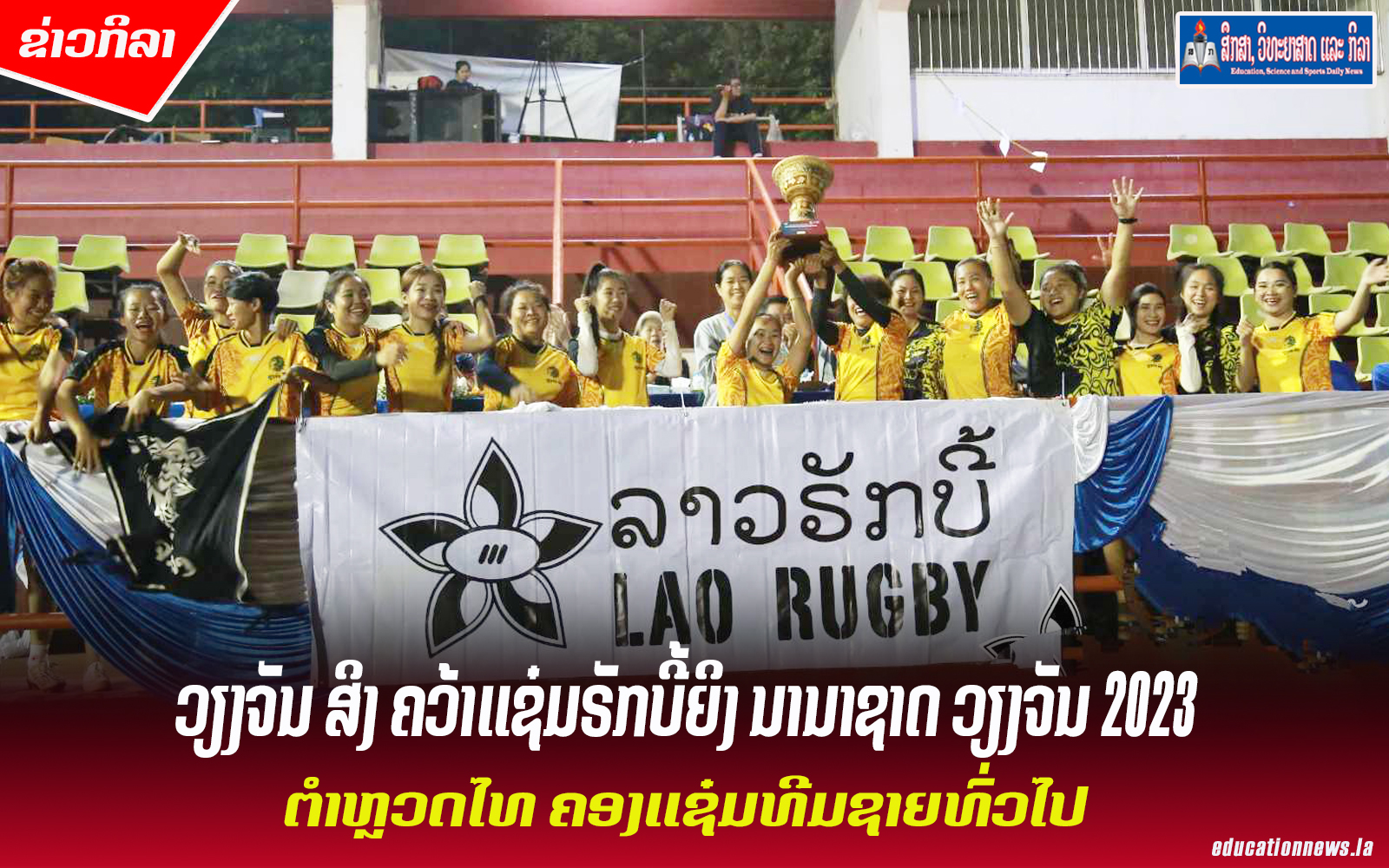 ສະຫະພັນກິລາຣັກບີ້ແຫ່ງຊາດລາວ ເປັນເຈົ້າພາບ ຈັດການແຂ່ງຂັນຣັກບີ້ ນານາຊາດ ວຽງຈັນ ປະຈຳປີ 2023 ຫຼື “Vientiane 10s International Rugby Championship 2023” ໃນລະຫວ່າງວັນທີ 18-19 ພະຈິກ 2023 ທີ່ສະໜາມກິລາກາງ ມະຫາວິທະຍາໄລແຫ່ງຊາດ ໂດຍໃຫ້ກຽດເຂົ້າຮ່ວມເປັນປະທານ ແລະ ມອບຂັນລາງວັນຂອງທ່ານ ທ່ານ ວິຣະຢຸດ ຣາຕິກຸນ ປະທານສະຫະພັນຣັກບີ້ແຫ່ງຊາດລາວ, ມີທ່ານ ນາງ ຈັນທະລາດ ພູມພິພັກ ຮອງຄະນະບໍດີ ຄະນະວິທະຍາສາດການກິລາ-ກາຍະກຳ ມະຫາວິທະຍາໄລແຫ່ງຊາດ, ທ່ານ ບຸນທັນ ກອງມະນີ ຮອງຫົວໜ້າພະແນກສຶກສາທິການ ແລະ ກິລາ ນະຄອນຫຼວງວຽງຈັນ, ທ່ານ ມາກ ຜູ້ຈັດການໃຫຍ່ ບໍລິສັດ ດີເຮັດແອວລາວ ແລະ ທ່ານ ພິວ ໂກຣ ຜູ້ອຳນວຍການໃຫຍ່ບໍລິສັດ ດີເອຊີ ຈຳກັດ ພ້ອມດ້ວຍັນດາຄະນະນຳແຕ່ລະຊາດ, ຄູຝຶກ ແລະ ນັກກິລາ ຕະຫຼອດຮອດກອງເຊຍເຂົ້າຮ່ວມຊົມ ແລະ ເຊຍຢ່າງຫຼວງຫຼາຍ.