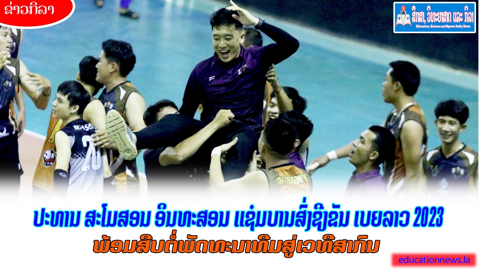 ປະທານ ສະໂມສອນບານສົ່ງ ອິນທະສອນ ວີຊີ (INTHASONE VOLLEYBALL CLUP) ສະແດງຄວາມພູມໃຈຕໍ່ທີມ ກໍຄື ນັກກິລາທຸກຄົນ ທີ່ພ້ອມກັນສ້າງປະຫວັດສາດຄອງແຊ໋ມການແຂ່ງຂັນກິລາບານສົ່ງໃນຮົ່ມປະເພດຊາຍ ລະດັບຊາດ ຫຼື ລາຍການ Beerlao Volleyball Championship 2023 ຫຼັງຈາກພິກແຊງເອົາຊະນະ ສະໂມສອນ ກອງທັບ ຮອງແຊ໋ມເກົ່າ 3-2 ເຊັດ ພ້ອມທັງຢືນຢັນຈະສືບຕໍ່ພັດທະນາ ແລະ ສົ່ງທີມເຂົ້າຮ່ວມແຂ່ງຂັນລາຍການຕ່າງໆຢ່າງຕໍ່ເນື່ອງ ເພື່ອສົ່ງເສີມນັກກິລາກ້າວສູ່ເວທີລະດັບພາກພື້ນ, ອານຸພາກພື້ນ ແລະ ສາກົນ.