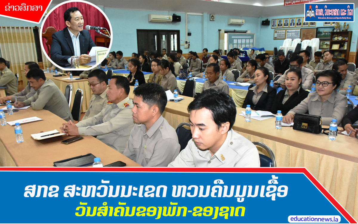 ພະແນກສຶກສາທິການ ແລະ ກິລາແຂວງ (ສກຂ) ສະຫວັນນະເຂດ ໄດ້ຈັດພິທີປາຖະກະຖາ 2 ວັນສໍາຄັນຂອງພັກ-ຂອງຊາດ ແລະ ຄໍາແນະນໍາ ກໍຄື ວັນສ້າງຕັ້ງກອງທັບ ປະຊາຊົນລາວ ຄົບຮອບ 75 ປີ (20 ມັງກອນ 1949-20 ມັງກອນ 2024) ແລະ ຄໍາແນະນໍາກ່ຽວກັບການປັບປຸງການຈັດຕັ້ງຄະນະກວດກາພັກ ແລະ ອົງການກວດກາແຕ່ລະຂັ້ນ ສະບັບເລກທີ 003/ຄກພຂ, ລົງວັນທີ 3 ມັງກອນ 2024 ແລະ ວັນສ້າງຕັ້ງສະຫະພັນກໍາມະບານລາວ ຄົບຮອບ 68 ປີ (1 ກຸມພາ 1956-1 ກຸມພາ 2024) ໃນວັນທີ 9 ກຸມພາ 2024 ທີ່ຫ້ອງປະຊຸມພະແນກດັ່ງກ່າວ ໂດຍໃຫ້ກຽດເປັນປະທານ ແລະ ປາຖະກະຖາຂອງທ່ານ ປອ ສຸກສົມພອນ ອະໂນໄທ ກໍາມະການພັກແຂວງ, ຫົວໜ້າພະແນກສຶກສາທິການ ແລະ ກິລາແຂວງ, ທ່ານ ພິມມະສອນ ວໍລະຍຸດ, ທ່ານ ອະນຸສອນ ສຸດທິວົງ ຮອງຫົວໜ້າພະແນກສຶກສາທິການ ແລະ ກິລາແຂວງ, ມີຄະນະພະແນກ, ຫົວໜ້າ/ຮອງຫົວໜ້າ 4 ສູນ, ຄະນະອໍານວຍການໂຮງຮຽນອ້ອມຂ້າງແຂວງ, ຫົວໜ້າ/ຮອງຫົວໜ້າ 10 ຂະແໜງ ແລະ ຄູອາຈານ ພ້ອມດ້ວຍພະນັກງານວິຊາການພາຍໃນພະແນກ ເຂົ້າຮ່ວມຮັບຟັງຢ່າງໜາແໜ້ນ.