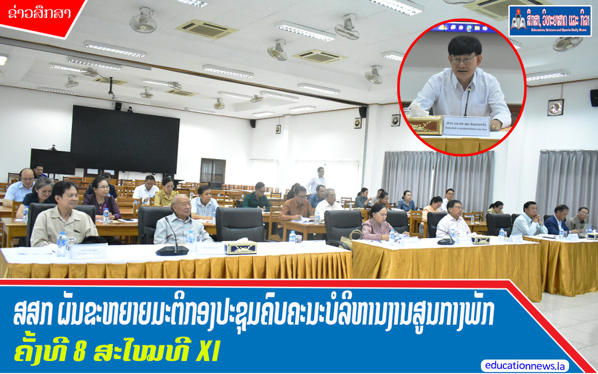ກະຊວງສຶກສາທິການ ແລະ ກິລາ (ສສກ) ໄດ້ຈັດກອງປະຊຸມສໍາມະນາຜັນຂະຫຍາຍມະຕິກອງປະຊຸມຄົບຄະນະບໍລິຫານງານສູນກາງພັກ ຄັ້ງທີ 8 ສະໄໝທີ XI ກ່ຽວກັບການປັບປຸງຄຸນນະພາບການສຶກສາ, ແກ້ໄຂບັນຫາປະລະການຮຽນ ແລະ ການຂາດແຄນຄູສອນ ເມື່ອບໍ່ດົນມານີ້ ທີ່ຫ້ອງປະຊຸມກະຊວງ ສສກ (ຕຶກໄອຊີທີ) ໂດຍພາຍໃຕ້ການເປັນປະທານຂອງສະຫາຍ ຮສ.ປອ ພຸດ ສິມມາລາວົງ ກຳມະການສູນກາງພັກ, ເລຂາຄະນະພັກກະຊວງ, ລັດຖະມົນຕີກະຊວງສຶກສາທິການ ແລະ ກິລາ, ມີອະດີດຮອງລັດຖະມົນຕີ, ຮອງເລຂາຄະນະພັກກະຊວງ, ປະທານຄະນະກວດກາພັກກະຊວງ, ພ້ອມດ້ວຍບັນດາຄະນະປະຈຳພັກ, ຄະນະບໍລິຫານງານພັກກະຊວງ, ຄະນະໜ່ວຍພັກກົມ, ຜູ້ຕາງໜ້າຮາກຖານທີ່ຂຶ້ນກັບອົງຄະນະພັກກະຊວງ ສສກ, ບັນດາຕາງໜ້າ 3 ອົງການຈັດຕັ້ງມະຫາຊົນຂັ້ນກະຊວງ, ຄະນະພັກຮາກຖານມະຫາວິທະຍາໄລ 4 ແຫ່ງ, ຄະນະພັກຮາກຖານພະແນກສຶກສາທິການ ແລະ ກິລາແຂວງ ແລະ ນະຄອນຫຼວງ, ຫ້ອງການສຶກສາທິການ ແລະ ກິລາ ເມືອງ, ນະຄອນ, ບັນດາວິທະຍາໄລຢູ່ທ້ອງຖິ່ນ ຕະຫຼອດຮອດພາກສ່ວນທີ່ກ່ຽວຂ້ອງເຂົ້າຮ່ວມຜ່ານທາງອອນລາຍ ແລະ ເຊິ່ງໜ້າ.