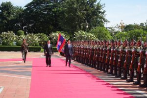 ພິທີຕ້ອນຮັບ ທ່ານ ອະນຸທິນ ຊານວີຣະກູນ ນາຍົກລັດຖະມົນຕີ ແຫ່ງ ຣາຊະອານາຈັກໄທ ພ້ອມດ້ວຍພັນລະຍາ ແລະ ຄະນະ ໄດ້ຈັດຂຶ້ນຢ່າງເປັນທາງການ ແລະ ສົມກຽດ ໃນວັນທີ 16 ຕຸລາ 2025 ຢູ່ສໍານັກງານນາຍົກລັດຖະມົນຕີ ແຫ່ງ ສປປ ລາວ ໂດຍໄດ້ຮັບການຕ້ອນຮັບຢ່າງອົບອຸ່ນຈາກທ່ານ ສອນໄຊ ສີພັນດອນ ນາຍົກລັດຖະມົນຕີ ແຫ່ງ ສປປ ລາວ ພ້ອມດ້ວຍພັນລະຍາ ແລະ ຄະນະ.