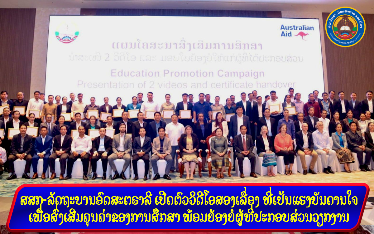- ສສກ-ລັດຖະບານອົດສະຕຣາລີ ເປີດຕົວວິດີໂອສອງເລື່ອງ ທີ່ເປັນແຮງບັນດານໃຈເພື່ອສົ່ງເສີມຄຸນຄ່າຂອງການສຶກສາ ພ້ອມຍ້ອງຍໍຜູ້ທີ່ປະກອບສ່ວນວຽກງານ